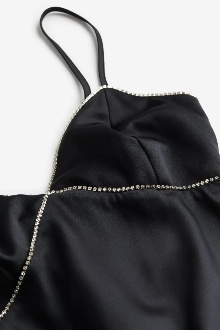 Rhinestone embellished black satin dress